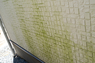 塗料の防水性能が落ちてくることでこれらの汚れが発生します。特にコケや藻が発生している場合は外壁の含水率が上がっていますのでお早めに塗替え工事をご依頼を。