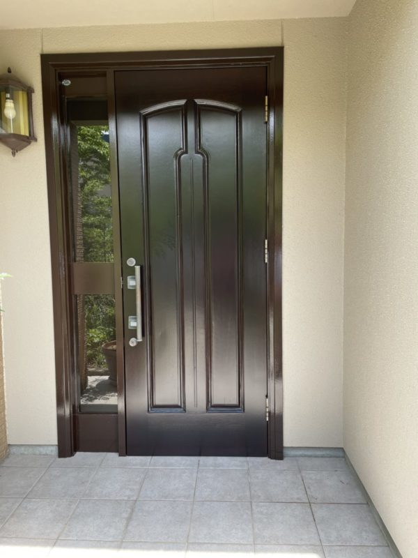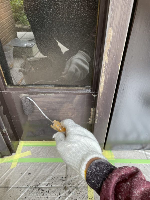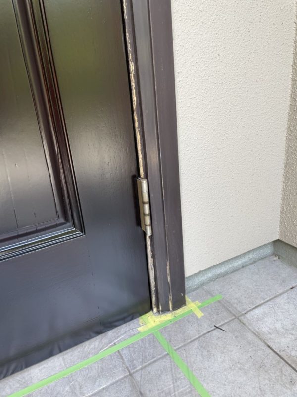 下の方が、雨や日差しの影響で塗膜が傷み剥がれてる状態です。
