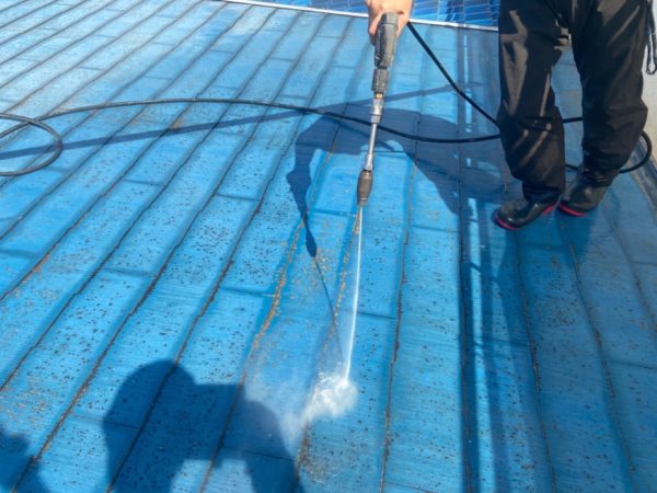 塗装する前にコケ、汚れを高圧洗浄で落としていきます。