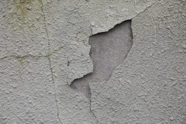 防水性の失われたモルタルの外壁にひびが入り、剥がれ落ちて下地が見える状態になってしまったというケース。